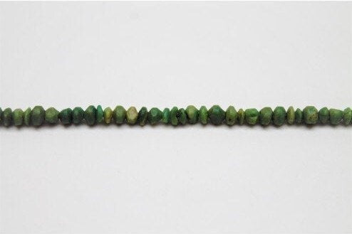 Afghan Jade Heishi (Serpentine). Similar in color to gaspeite. Hand cut saucer shaped spacers.
